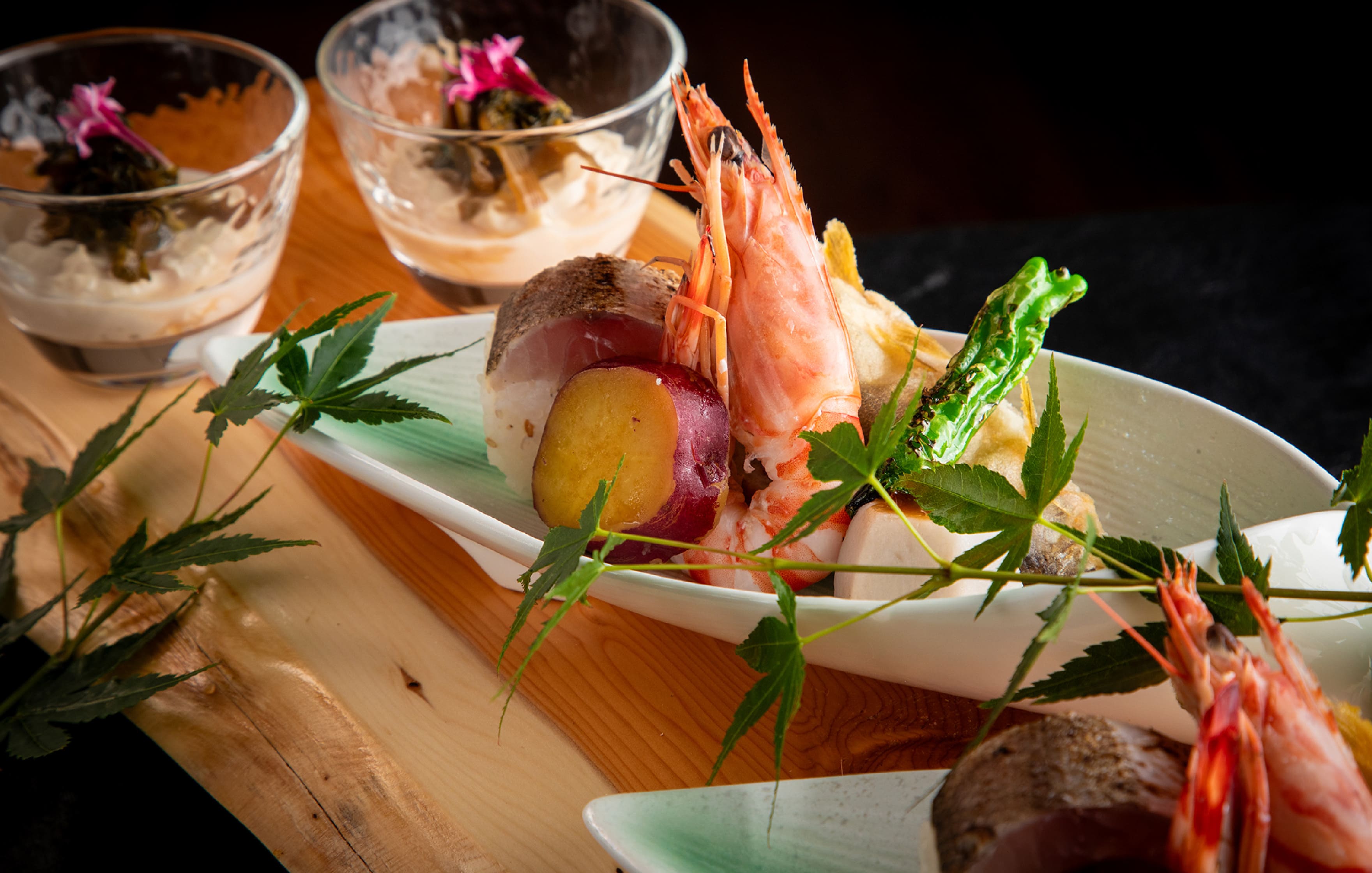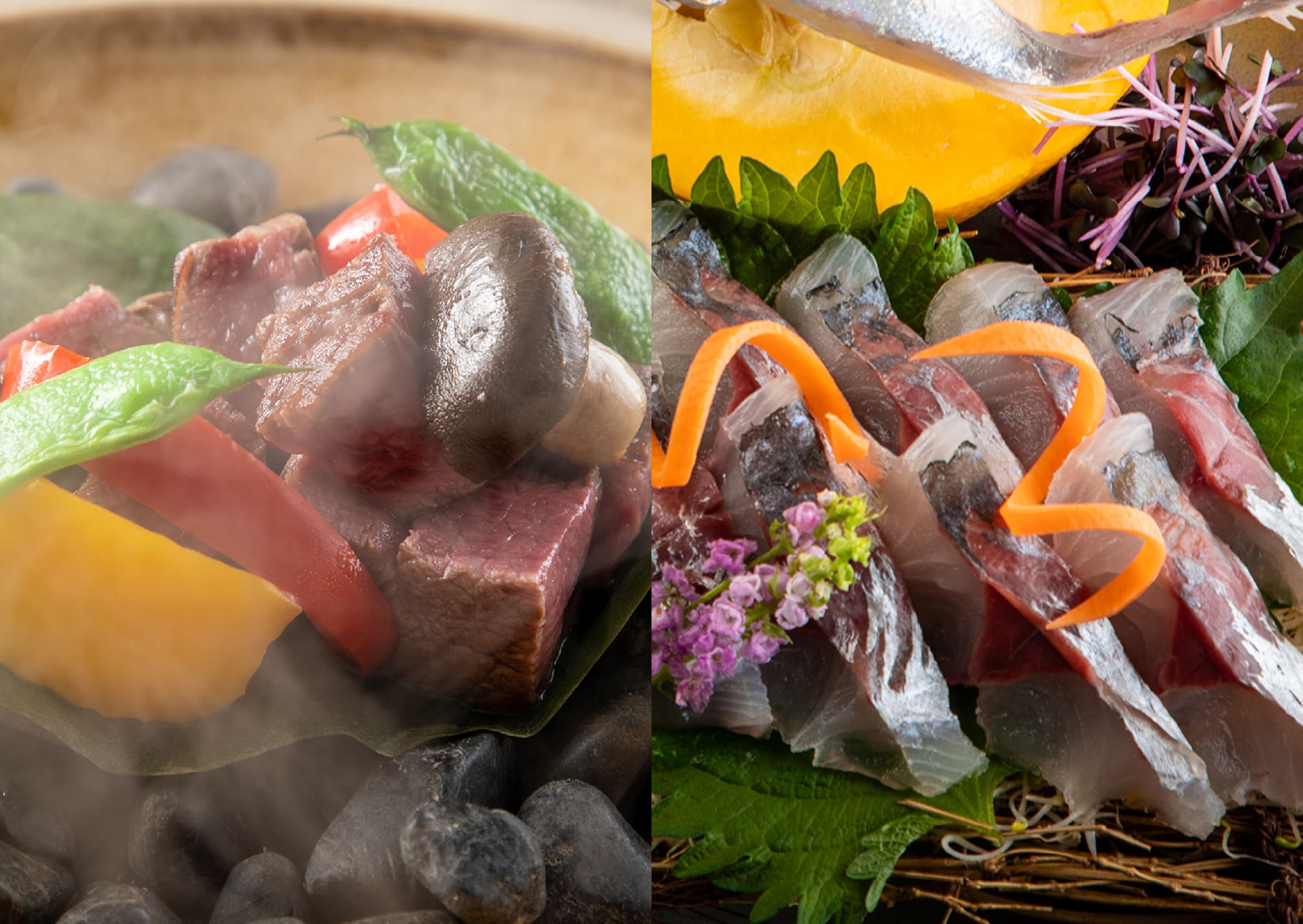 육질4등급 이상의 일품 오이타 와규의 후박나뭇잎구이와 제철 생선 활어회를 메인으로 장인의 기술이 빛나는 창작 카이세키. 촘촘한 마블링과 녹는듯한 풍미를 맛보다. 오이타의 산해 진미가 자아내는 미식절경을 만끽하세요.