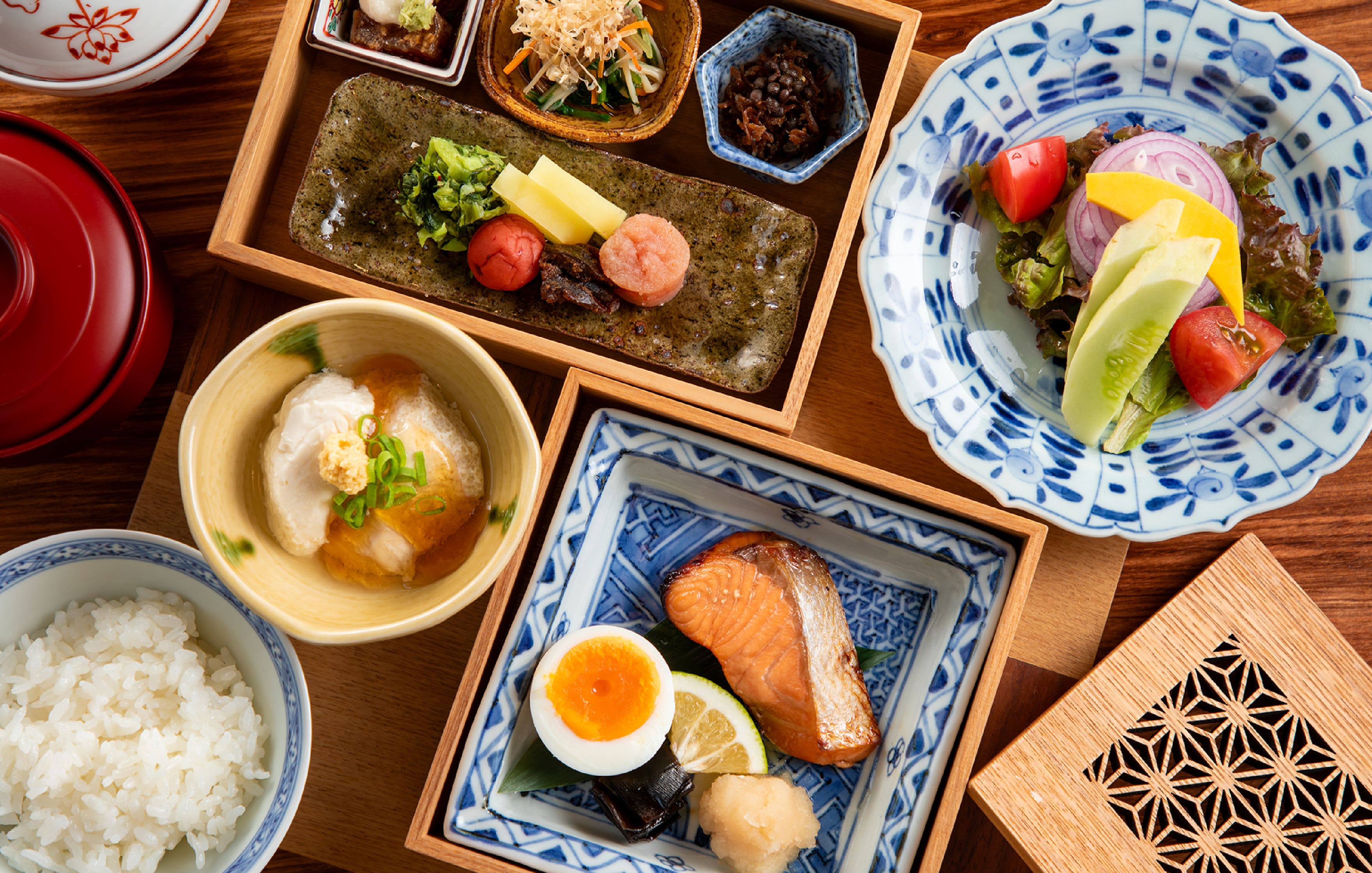 제철의 미각과 장인의 기술이 만들어내는 호화로운 일본 전통조식. 엄선한 식재료와 아름다운 식기가 오감을 매료시키는 행복한 시간을 연출. 콘자쿠안에서 맞이하는 아침은 심신 모두를 채워주는 특별한 체험으로.